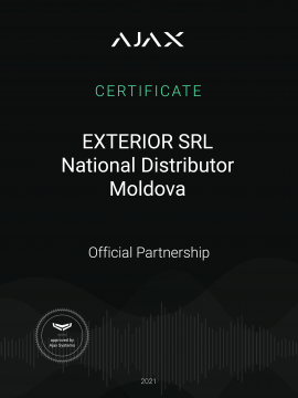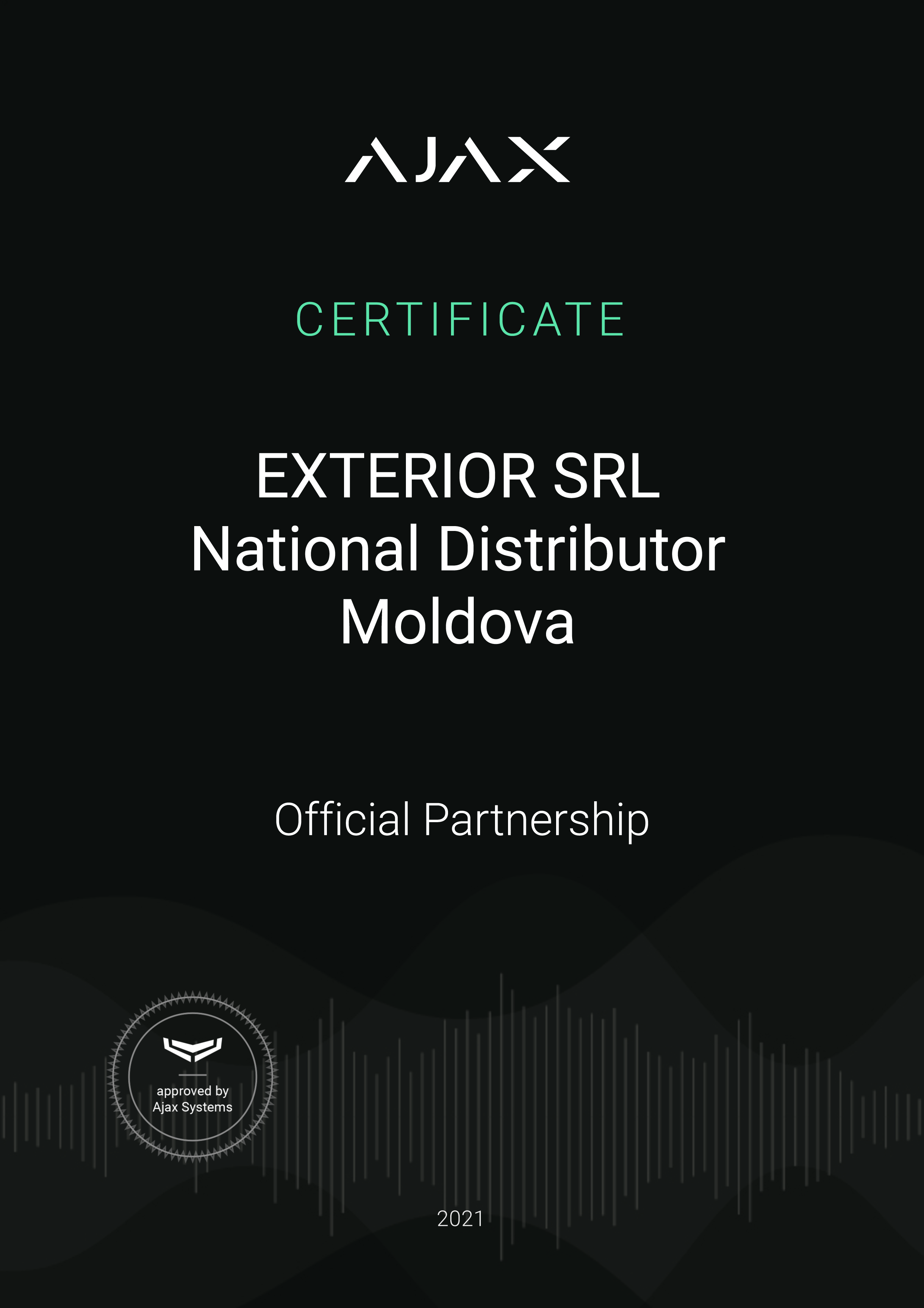 Exterior официально представляет в Республике Молдова ведущие бренды производителей систем безопасности: Dahua Technology, IMOU, AJAX, DSC, Zkteco, Tantos, Paradox, Тунгус, ITC Audio, Axxon, Macroscop, Fire Class, C.Nord, Bolid, Ultracell, Elmes electronic, Perkotek, Arton, Lumering, HD Point, IQ Cavi, IQ Power.