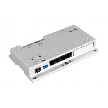 DH-VTNA1040B Distribuitor PoE cu 4 porturi pentru posturi interioare analog. Voltaj: 24V. Temperatura de functionare: -10℃~+55℃. Dimensiuni (LxÎxA): 178.8x107.1x30.3mm