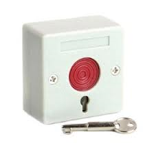 AUPB-54 Buton panica aplicat cu cheie. Finisaj: ABS. Culoare: alb. Dimensiuni: 4.5 x 4.5 cm