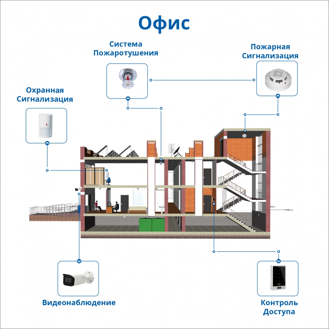 В офисах устанавливаются следующие системы безопасности: