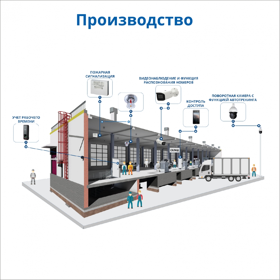 Система безопасности производства объединяет комплекс автоматизированных технических средств, способствующих быстрому выявлению, пресечению и предупреждению посягательств на законные права, рабочие процессы и собственность предприятия. Системой осуществляется постоянный контроль над работой производственного предприятия, корректным исполнением рабочих процессов, качеством работы на участках, процессами упаковки и отгрузки товаров, показаниями датчиков и приборов. Ведётся постоянное наблюдение над офисами и складами, производственными и вспомогательными помещениями, прилегающей территорией предприятия, а также сотрудниками и посетителями. Всё необходимое оборудование для системы безопасности производства, а также проектирование, монтаж, настройку и дальнейшее сервисное обслуживание предоставляет компания EXTERIOR.